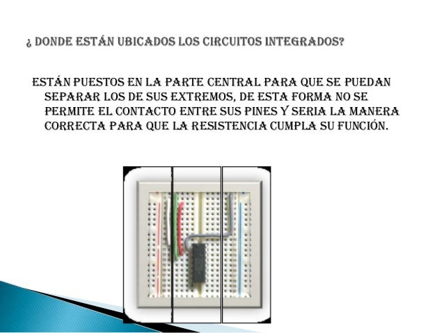 - 1. Es una especie de tablero con orificios, en la cual se pueden insertar componentes electrónicos y cables para armar circuitos. Como su nombre lo indica, esta tableta sirve para experimentar con circuitos electrónicos, con lo que se asegura el buen funcionamiento del mismo.